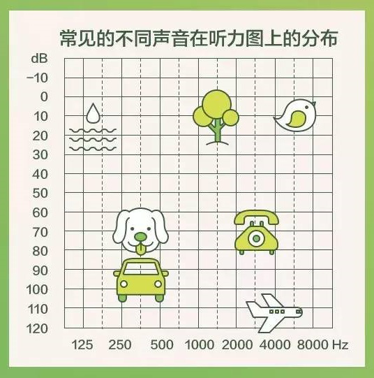 <span style="font-size:16px;"> 今天為大家分享的是聽力圖的相關知識,聽力圖是記錄純音聽力測試結果的圖表,具體體現了受試者聽力水平的程度、類型及病變位置。</span></p><p><span style="font-size:16px;"> 1坐標軸</span></p><p><span style="font-size:16px;"> 縱坐標, 即左邊豎著的一列數字。</span></p><p><span style="font-size:16px;"> 這些是指聲音的強度,就是聲波傳遞到你的位置,耳朵所能感受到的振動幅度,以分貝(dB)為單位。</span></p><p><span style="font-size:16px;"> 聲音的強度與聲源的震動幅度有關。</span></p><p><span style="font-size:16px;"> </span></p><center><span style="font-size:16px;"><img alt="" src="/upfiles/201807120232222395.png" width="541" height="285" /></span></center><p></p><p><span style="font-size:16px;"> 聲音的強度也與你的耳朵和聲源的相對位置有關。</span></p><p><span style="font-size:16px;"> </span></p><center><span style="font-size:16px;"><img alt="" src="/upfiles/201807120232302154.png" width="544" height="282" /></span></center><p></p><p><span style="font-size:16px;"> 想必大家也會有疑惑,聲音強度為什么會有負數呢?</span></p><p><span style="font-size:16px;"> </span></p><center><span style="font-size:16px;"><img alt="" src="/upfiles/201807120232392977.png" width="535" height="500" /></span></center><p></p><p><span style="font-size:16px;"> 這是因為分貝的 0 刻度是聽力零級,簡單地說就是科研人員測了很多聽力正常男女的聽力,以他們能聽到的最小聲音作為聽力零級,是根據人耳的一般感受能力來制定的。負分貝的聲音大多數人類無法感受到,但卻是真實存在的。</span></p><p><span style="font-size:16px;"> 橫坐標, 即右邊橫著的一列數字。</span></p><p><span style="font-size:16px;"> 這些是指聲音的頻率,就是聲波每秒鐘振動多少次。</span></p><p><span style="font-size:16px;"> </span></p><center><span style="font-size:16px;"><img alt="" src="/upfiles/201807120232464887.png" width="541" height="238" /></span></center><p></p><p><span style="font-size:16px;"> 振動次數少,頻率低,音調相對低。</span></p><p><span style="font-size:16px;"> </span></p><center><span style="font-size:16px;"><img alt="" src="/upfiles/201807120232533059.png" width="541" height="235" /></span></center><p></p><p><span style="font-size:16px;"> 聲音頻率以赫茲(Hz)為單位,這里的數字 2000 就是 2000 赫茲(Hz), 指每秒振動 2000 次的聲音。</span></p><p><span style="font-size:16px;"> 我們日常生活中常聽到的環境聲在聽力圖上都可以找到相對應的頻率和強度范圍,例如:</span></p><p><span style="font-size:16px;"> </span></p><center><span style="font-size:16px;"><img alt="" src="/upfiles/201807120233012378.png" width="536" height="541" /></span></center><p></p><p><span style="font-size:16px;"> 2言語香蕉圖</span></p><p><span style="font-size:16px;"> </span></p><center><span style="font-size:16px;"><img alt="" src="/upfiles/201807120233093.png" width="509" height="502" /></span></center><p></p><p><span style="font-size:16px;"> 為什么聽力圖上會有一根香蕉呢?</span></p><p><span style="font-size:16px;"> 人的言語聲也能在聽力圖上找到對應的頻率和強度范圍。因為這個范圍看起來形狀很像一根香蕉,所以我們叫他言語香蕉圖。 當我們的聽力進入言語香蕉圖,就意味著能夠聽到絕大部分言語聲。</span></p><p><span style="font-size:16px;"> 我們漢語拼音中的聲母、韻母都代表著不同頻率和強度的言語聲。</span></p><p><span style="font-size:16px;"> </span></p><center><span style="font-size:16px;"><img alt="" src="/upfiles/201807120233208159.png" width="541" height="478" /></span></center><p></p><p><span style="font-size:16px;"> 言語香蕉圖只是語言主要分布區域圖,還有發音分布在其它區域。</span></p><p><span style="font-size:16px;"> 3圖形符號</span></p><p><span style="font-size:16px;"> 那么聽力圖上的兩條線代表的是什么意思?</span></p><p><span style="font-size:16px;"> </span></p><center><span style="font-size:16px;"><img alt="" src="/upfiles/201807120233271199.png" width="508" height="503" /></span></center><p></p><p><span style="font-size:16px;"> </span></p><center><span style="font-size:16px;"><img alt="" src="/upfiles/201807120233364222.png" width="508" height="508" /></span></center><p></p><p><span style="font-size:16px;"> 上圖是左耳聽力測試報告圖,帶“>”的是骨導線,帶“x”的是氣導線。</span></p><p><span style="font-size:16px;"> 下圖是右耳聽力測試報告圖,帶“<”的是骨導線,帶“o”的是氣導線。</span></p><p><span style="font-size:16px;"> 一般的聽力圖中藍色符號代表左側聽力,紅色符號代表右側聽力。</span></p><p><span style="font-size:16px;"> 左耳右耳</span></p><p><span style="font-size:16px;"> 氣導xo</span></p><p><span style="font-size:16px;"> 骨導 > <</span></p><p><span style="font-size:16px;"> 氣導和骨導是我們的耳朵感受聲音的兩個路徑。</span></p><p><span style="font-size:16px;"> 氣導是空氣傳導路徑,聲音通過耳廓收集,振動鼓膜和聽骨鏈,傳遞到內耳。</span></p><p><span style="font-size:16px;"> </span></p><center><span style="font-size:16px;"><img alt="" src="/upfiles/20180712023345684.png" width="539" height="350" /></span></center><p></p><p><span style="font-size:16px;"> 骨導是骨傳導路徑,聲音通過頭骨振動傳遞到內耳。</span></p><p><span style="font-size:16px;"> </span></p><center><span style="font-size:16px;"><img alt="" src="/upfiles/201807120235248384.png" width="540" height="353" /></span></center><p></p><p><span style="font-size:16px;"> 當然,平時大家也會看到“□”“△”“]”“[”這樣的符號,他代表的是加掩蔽后測試結果,如下圖:</span></p><p><span style="font-size:16px;"> (加掩蔽)