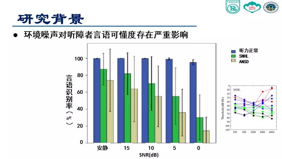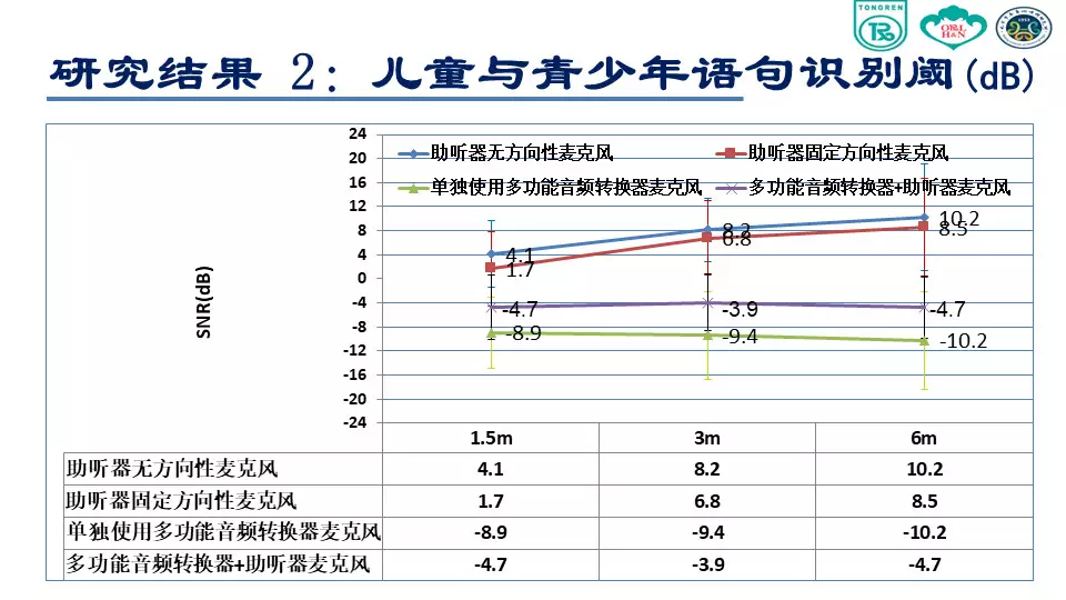 <br /><br /><br />環境噪聲對聽障者言語可懂度存在嚴重影響<br /><img src="/upfiles/201807200933345194.jpg" alt="" /><br />(感音神經性聾患者聽力圖)<br /><br /><br />在有噪聲的環境里,特別對于感音神經性聾患者來說非常困難,言語清晰度和可懂度會存在嚴重障礙。<br />在安靜環境或者信噪比為零的環境下,聽力正常人的表現基本接近 100%,說明聽力正常者的聽覺功能、抗噪功能是正常的。上圖綠色柱狀圖表示,伴隨著環境噪聲的增大,言語識別率遞減。<br /><br /><br /></span><p><span style="font-size:14px;">隨著與聲源距離的增加,強度迅速衰減,信噪比逐漸下降</span></p><p><span style="font-size:14px;"><img src="/upfiles/201807200933155202.jpg" alt="" /><br /></span></p><span style="font-size:14px;">已經實現的助聽輔助技術<br /><br /><br />FM 系統<br /><br /><br />數字無線配件:發射器、接收機數字信號傳輸<br /><br /><br />研究目的<br />本項課題主要是研究使用無線麥克風系統對聽障患者在噪聲條件下和遠距離環境下對言語識別能力改善的效果。<br /><br /><br />研究方法<br /><br /><br /><br /><br />助聽設備<br /><img src="/upfiles/201807200932488824.jpg" alt="" /><br /><br />測試材料<br /><br /><br /><br /><br />漢語普通話版噪聲下言語測試材料(Mandarin Hearing in Noise Test, MHINT)<br /><br /><br />成人測試材料<br /><br /><br />兒童測試材料<br /><br /><br />言語刺激聲<br /><br /><br />言語刺激聲分別來自受試者1.5m,3m和6m處<br /><br /><br />采用自適應的步驟來測試噪聲中的語句識別閾<br /><br /><br />環境噪聲<br /><br /><br />采用與測試材料本身頻譜接近的言語譜噪聲 (SSN)<br /><br /><br />噪聲強度為65 dB(A)<br /><br /><br /><br /><br />測試環境<br /><img src="/upfiles/201807200931496282.jpg" alt="" /><br /><br />??成人受試者<br /><img src="/upfiles/201807200931377495.jpg" alt="" /><br /><br />??程序設置<br /><br /><br />單獨使用助聽器麥克風(HA Mic Only):固定方向性<br /><br /><br />單獨使用迷你麥克風(Micro Mic Only)<br /><br /><br />同時使用助聽器麥克風和迷你麥克風(HA Mic+Micro Mic)<br /><br /><br />受試者距離言語信號揚聲器的距離<br /><br /><br />1.5m<br /><br /><br />3m<br /><br /><br />6m<br /><br /><br />隨機更換各種測試條件<br /><br /><br />兒童和青少年受試者<br /><br /><img src="/upfiles/201807200930455527.jpg" alt="" /><br />?程序設置<br /><br /><br />C1:單獨使用助聽器麥克風:全向性<br /><br /><br />C2:單獨使用助聽器麥克風:固定方向性<br /><br /><br />C3:單獨使用迷你麥克風<br /><br /><br />C4:同時使用助聽器麥克風和迷你麥克風<br /><br /><br />受試者距離言語信號揚聲器的距離<br /><br /><br />S1:1.5m<br /><br /><br />S2:3m<br /><br /><br />S3:6m<br /><br /><br />隨機更換各種測試條件<br /><br /><br />統計學分析<br /><br /><br />采用雙因素方差分析判斷受試者噪聲條件下言語識別閾是否受距離和程序設置的影響<br /><br /><br />分析距離對程序設置各水平的影響<br /><br /><br />分析程序設置對距離各水平的影響<br />研究結果<br />成人語句識別閾<br /><img src="/upfiles/201807200929474048.jpg" alt="" /><br /><br />?上圖中,藍色曲線表示助聽器麥克風打開的情況;綠色表示助聽器和迷你麥克風同時打開;紅色表示僅打開迷你麥克風。<br /><br /><br />我們可以看到,單獨使用助聽器麥克風情況下,言語識別閾從1.5m處的5.55 dB上升到6m處的13.11 dB。單獨使用迷你麥克風和使用迷你麥克風同時開啟助聽器麥克風這兩種情況下受試者言語識別閾隨距離變化不大。<br /><br /><br />在1.5m處單獨使用迷你麥克風比單獨使用助聽器麥克風信噪比可以獲得11dB的改善,同時這種改善會隨著距離的增加效果越來越明顯,在6m處可到20.6 dB。<br /><br /><br />兒童與青少年語句識別閾<br /><img src="/upfiles/201807200929214754.jpg" alt="" /><br /><br />??方向性麥克風的使用,隨著距離的增加,言語識別閾沒有明顯改善。<br />結論<br />單獨使用助聽器麥克風(全向性或方向性),伴隨距離增加,言語識別能力會顯著下降;<br /></span><p><span style="font-size:14px;">使用無線麥克風系統,言語識別能力不隨距離的改變而發生顯著改變,即可以顯著改善遠距離噪聲環境下言語識別能力。(內容來源網絡)</span></p><p><span style="font-size:14px;">聽覺有道助聽器品牌:http://www.sdhuijia.cn/</span></p>" />