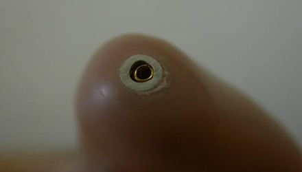 缺點:由于橋式防耳垢罩的出聲孔在兩側(cè),又是裝在受話器管內(nèi)(導(dǎo)聲孔直徑小),多少對聲音的輸出有些影響。出聲孔容易被耳垢堵塞而不容易被發(fā)現(xiàn),而造成聲音輕或無聲假象,需使用者日常維護。對于耳道有些彎度的使用者會出現(xiàn)配戴困難和疼痛感。