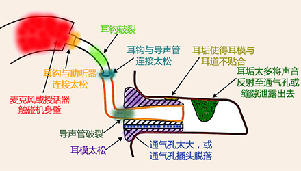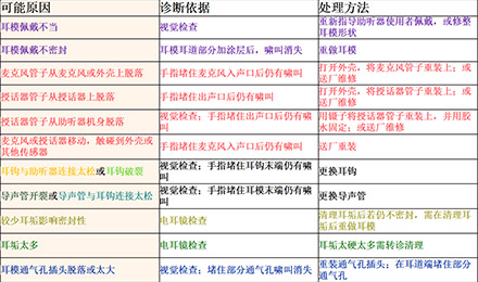 <span style="font-size:16px;"> 嘯叫,一直是引起助聽器使用者不滿的一大原因,也是驗配師在助聽器調(diào)試時最為棘手的難題之一。</span></p><p><span style="font-size:16px;"> 通常,嘯叫分內(nèi)部嘯叫和外部嘯叫。內(nèi)部嘯叫常由內(nèi)部零件故障引起,而外部嘯叫則是與助聽器外殼或耳模,助聽器調(diào)試等有關(guān)。</span></p><p style="text-align: center;"><span style="font-size:16px;"><img src="/upfiles/201810100140556872.jpg" alt="" /><br /></span></p><p><span style="font-size:16px;"> 我們常常說的外部嘯叫是在聲音被麥克風(fēng)拾取、放大器放大、授話器轉(zhuǎn)換后,又從各種縫隙(如外殼與耳道的縫隙、通氣孔)中“跑”出來,又“跑”進去,如此反復(fù)多次,使得聲音越來越大,產(chǎn)生“吱吱吱”的惱人嘯叫。</span></p><p><span style="font-size:16px;"> 以助聽器的角度來看,shou話器把聲音授給耳朵聽,當(dāng)用“授”,即授話器。</span></p><p><span style="font-size:16px;"> 接下來將分別針對定制式(ITE/ITC/CIC)和耳背式(BTE)助聽器的嘯叫問題,跟著產(chǎn)生嘯叫的路徑,一一“攻破”嘯叫難題。注意,這里不說助聽器調(diào)試,只尋嘯叫路徑,并“堵死”嘯叫“通路”,讓進入助聽器的聲音“不走回頭路”。</span></p><p><span style="font-size:16px;"> 1、ITE/ITC/CIC助聽器</span></p><p><span style="font-size:16px;"> 先來看看ITE/ITC/CIC助聽器可能發(fā)生嘯叫的路徑。</span></p><p><span style="font-size:16px;"> 圖1里是一個定制式助聽器佩戴于外耳道內(nèi)的示意圖,各種顏色的字和相應(yīng)顏色的標(biāo)記展示了發(fā)生嘯叫的各種情況。</span></p><center><span style="font-size:16px;"><img alt="" src="/upfiles/201810100142273990.png" width="440" height="250" /></span></center><p></p><p style="text-align: center;"><span style="font-size:16px;">圖1:ITE/ITC/CIC助聽器發(fā)生嘯叫的路徑一覽</span></p><p style="text-align: left;"><span style="font-size:16px;"> 例如,紅色表示“麥克風(fēng)管子脫落”,這屬于助聽器內(nèi)部零件脫落、故障,為內(nèi)部嘯叫。</span></p><p><span style="font-size:16px;"> 橙色表示“外殼佩戴太松”,這屬于外殼不密封的聲音泄露,為外部嘯叫。</span></p><p><span style="font-size:16px;"> 那如何檢查出是這些原因,并對問題進行相應(yīng)處理呢?請對照表1中的“診斷依據(jù)”和“處理方法”查看。</span></p><center><span style="font-size:16px;"><img alt="" src="/upfiles/201810100142337254.png" width="520" height="250" /></span></center><p></p><p style="text-align: center;"><span style="font-size:16px;">表1:ITE/ITC/CIC助聽器產(chǎn)生嘯叫的可能原因及對應(yīng)的診斷依據(jù)、處理方法</span></p><p><span style="font-size:16px;"> 例如,當(dāng)發(fā)現(xiàn)“手指堵住麥克風(fēng)入聲口后仍有嘯叫”,可推斷原因是“麥克風(fēng)管子從麥克風(fēng)或外殼上脫落”或“麥克風(fēng)或授話器移動,觸碰到外殼或其他傳感器”,這時的處理方法是“送廠維修”。</span></p><p><span style="font-size:16px;"> 2、BTE助聽器</span></p><p><span style="font-size:16px;"> 學(xué)會了看ITE/ITC/CIC助聽器的一圖一表,再來看看BTE助聽器的嘯叫路徑圖(圖2),以及表2中羅列的可能原因、診斷依據(jù)和處理方法,相信看起來更加輕松、直觀、一目了然。</span></p><center><span style="font-size:16px;"><img alt="" src="/upfiles/201810100142383483.png" width="440" height="250" /></span></center><p></p><p style="text-align: center;"><span style="font-size:16px;">圖2:BTE助聽器發(fā)生嘯叫的路徑一覽</span></p><center><span style="font-size:16px;"><img alt="" src="/upfiles/201810100142449945.png" width="462" height="273" /></span></center><p></p><p style="text-align: center;"><span style="font-size:16px;">表2:BTE助聽器產(chǎn)生嘯叫的可能原因及對應(yīng)的診斷依據(jù)、處理方法</span></p><p><span style="font-size:16px;"> 更多詳情請登錄www.sdhuijia.cn。</span></p>" />