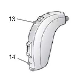 13. LED指示燈*:提示助聽器是否正常使用、是否需要更換電池。