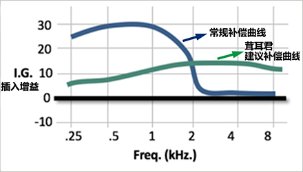 本文根據(jù)多年的臨床聽力學(xué)經(jīng)驗,以及國內(nèi)外的研究結(jié)果,分享復(fù)雜案例中上升型聽力損失的調(diào)試技巧。</p><p> 什么是上升型聽力損失?</p><p> 上升型聽力損失,顧名思義,指的是聽力損失從低頻到高頻逐漸降低,聽力圖上呈現(xiàn)上升“爬坡”的曲線形狀。</p><p> </p><center><img alt="" src="/upfiles/201904220143022080.png" width="440" height="250" /></center><p></p><p> 在本文中特指那些低頻為中度聽力損失,中高頻聽力正常或接近正常的,其中不包含傳導(dǎo)性聽力損失和混合型聽力損失,單指感音神經(jīng)性聽力損失。</p><p> 這類聽力損失,為什么按照聽力圖顯示的損失,多補償?shù)皖l反而沒用呢?到底應(yīng)該怎么調(diào)呢?</p><p> 先看一個有趣的循證測試</p><p> 在講述如何處理上升型聽力損失之前,我們先來看一個有趣的實驗。</p><p> 這項研究共有6名受試者進行了測試,其中5名受試者在高頻時聽力正常或接近正常,而低頻時聽力損失為中等程度,1名受試者為V型聽力圖。也就是說絕大部分人符合本文所講的上升型聽力損失。</p><p> 首先對6名受試者進行低通、高通、寬頻、K-Bass放大。也就是說分別給予如下圖的增益:</p><p> </p><center><img alt="" src="/upfiles/201904220143074763.png" width="440" height="250" /></center><p></p><p> 四種放大方案的最大區(qū)別就在于低頻和高頻增益各有不同。</p><p> 在低通放大中,低頻有一定的增益,而高頻則有一些插入缺失(負增益);在高通放大中,低頻增益為零,高頻增益最多;在寬頻放大中,低、高頻都有增益,其中低頻有較大增益高頻,高頻有相對較少的增益;在K-Bass放大中,低頻增益明顯,高頻增益為零,剛好彌補插入缺失。</p><p> 然后分別在無增益以及四類放大情況下進行言語清晰度的評估,結(jié)果如下圖所示。</p><p> </p><center><img alt="" src="/upfiles/201904220143125111.png" width="300" height="340" /></center><p></p><p> 我們發(fā)現(xiàn)沒有補償(UA),寬頻(BB),高通(HP),K-Bass(KB)的平均言語清晰度都大于低通(LP)的平均言語清晰度。</p><p> 此外,分別測試每個受試者在低通(LP)和其他放大方案下的高頻輔音辨別率得分,結(jié)果顯示,其他放大方案都高于低通(LP)的輔音辨別率得分,如下圖所示。</p><p> </p><center><img alt="" src="/upfiles/201904220143177827.png" width="300" height="335" /></center><p></p><p> 是不是疑惑?</p><p> 看到上述實驗,相信很多驗配師肯定會很疑惑:為什么只給低頻補償?shù)男Ч亲畈畹哪?對于上升型的聽力損失難道不是應(yīng)該好好補償?shù)皖l聽力損失嗎?</p><p> 解疑之前,不妨再看個“假如”:</p><p> 假如你在看電視,出現(xiàn)一些你非常感興趣的信息,你是不是會提高音量去仔細傾聽呢?</p><p> </p><center><img alt="" src="/upfiles/20190422014323161.png" width="440" height="250" /></center><p></p><p> 答案是肯定的,遇到我們感興趣的信息,我們常常會“豎起耳朵”仔細聆聽。</p><p> 我們都知道言語信息通常分布在中高頻率,所以要想聽到我們感興趣的言語信息,我們可以適當調(diào)高電視機音量,即便我們的聽力是正常的。</p><p> 回到助聽器驗配,可想而知,對于配戴助聽器的弱聽人士來說,考慮到高頻的插入缺失,也的的確確需要給予其一定的聽力補償。</p><p> 但是有些驗配師可能會想,上升型聽力損失的高頻接近正常,高頻增益過大會不會帶來不好的影響呢?</p><p> 其實不然,只要在弱聽人士的聽覺動態(tài)范圍內(nèi)增加高頻增益,就不會帶來不適;這就相當于聽力正常者平常看電視時增加音量,能讓我們更好地聽到自己想要聽到的東西。</p><p> 簡單而高效的調(diào)試技巧</p><p> 初次驗配時:</p><p> 在處理上升型聽力損失時,我們通常首先會看到如下圖中的藍色曲線,這似乎也是最符合常理的。</p><p> </p><center><img alt="" src="/upfiles/201904220143288699.png" width="440" height="250" /></center><p></p><p> 但是,我們前面介紹了低通、高通、寬頻、K-Bass放大,結(jié)果表明,低通放大給足低頻,高頻不補償?shù)男Ч畈睢?lt;/p><p> 所以,基于循證驗配,在調(diào)試上升型聽力損失時,建議:在高頻給予至少10dB-15dB的插入增益,確保弱聽人士在高頻能夠聽到聲音,并適當減少低頻增益,如下圖中的綠色補償曲線。</p><p> </p><center><img alt="" src="/upfiles/20190422014334476.png" width="440" height="250" /></center><p></p><p> 不必糾結(jié)高頻聽力正常會不會補償不妥,目前的多通道非線性助聽器已經(jīng)可以對高強度輸入進行防范管控,所以不用擔(dān)心弱聽人士會因高頻的補償而感到不適。</p><p> 相反,你甚至?xí)@訝,弱聽人士突然之間聽得更加清楚了。</p><p> 精細微調(diào)時:</p><p> 另外,在接下來的微調(diào)時,每個弱聽人士的聆聽需求可能都不一樣。 有些可能想要更多的低頻能量,有些可能喜歡寬頻補償,有些可能一點低頻補償不需要,但是,幾乎沒有弱聽人士想要降低高頻增益。</p><p> 很多時候,弱聽人士都希望把高頻再多補償點,以提高言語清晰度。</p><p> 所以,在此建議可以逐步減少低頻增益(部分可適當增加低頻),增加高頻增益,慢慢調(diào)試,直到弱聽人士覺得合適,如下圖綠色曲線的紅箭頭所示。</p><p> </p><center><img alt="" src="/upfiles/201904220143397445.png" width="440" height="250" /></center><p></p><p> 在這一環(huán)節(jié)中,微調(diào)的最終目的就是達到更高的言語清晰度。</p><p> 要用高級信號處理技術(shù)嗎?</p><p> 除了上述的增益調(diào)節(jié),對于上升