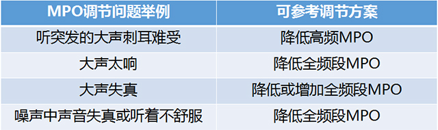 驗配師需要根據弱聽人士的不舒適閾,或是模擬“制造”大聲音(如擊掌、拍桌子等預估不舒適閾),適當調整MPO,避免給用戶帶來不適甚至造成聲損傷。